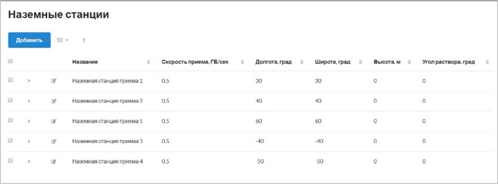 Пользовательский интерфейс системы представляет собой одностраничное веб-приложение. На рис. 9 представлен один из экранов с данными для планирования – экран НС. В системе присутствуют аналогичные экраны для МКА, заявок на съемку ОН, календарей и ограничений доступности ресурсов. Данные для планирования можно добавлять, изменять, удалять, при этом будет производиться динамическое перестроение расписания с учетом возникших изменений.