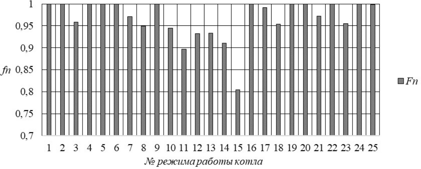 Режимы, при которых , считаются неэффективными. Обобщенный критерий экономичности показывает, что оптимальными являются режимы работы котла № 1–15, 17–18. При режимах работы № 16, 19–25 эксплуатация котла по экономичности считается неэффективной.