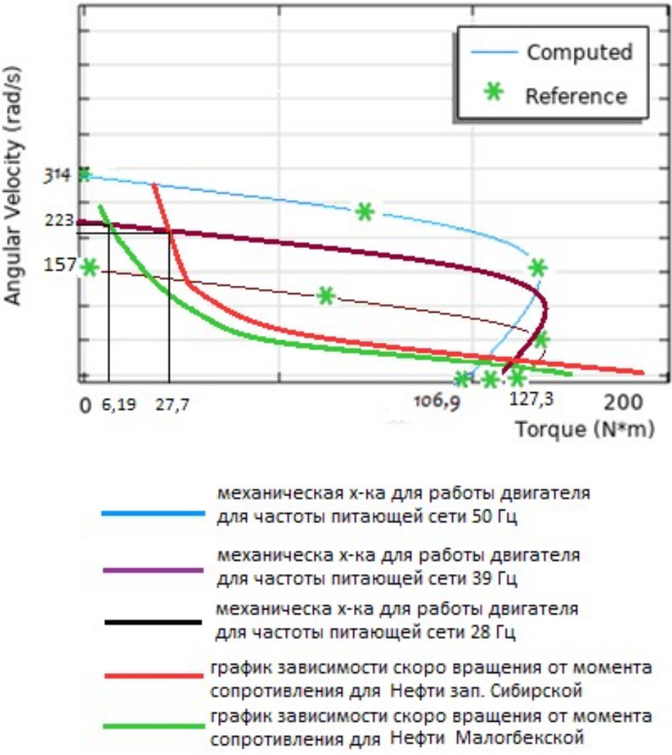 Ниже приведены полученные в результате расчета электромагнитной задачи электромеханические характеристики трехфазного индуктора на рабочих частотах 50, 39 и 28Гц. Как следует из результатов расчета и приведенных диаграмм (рис. 4), исследуемая конструкция имеет жесткую механическую характеристику, что позволяет обеспечить достаточно широкий диапазон регулирования частоты вращения.