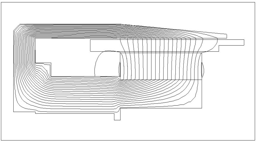 Рис. 3. Картина линий магнитной индукции при центральном положении якоря