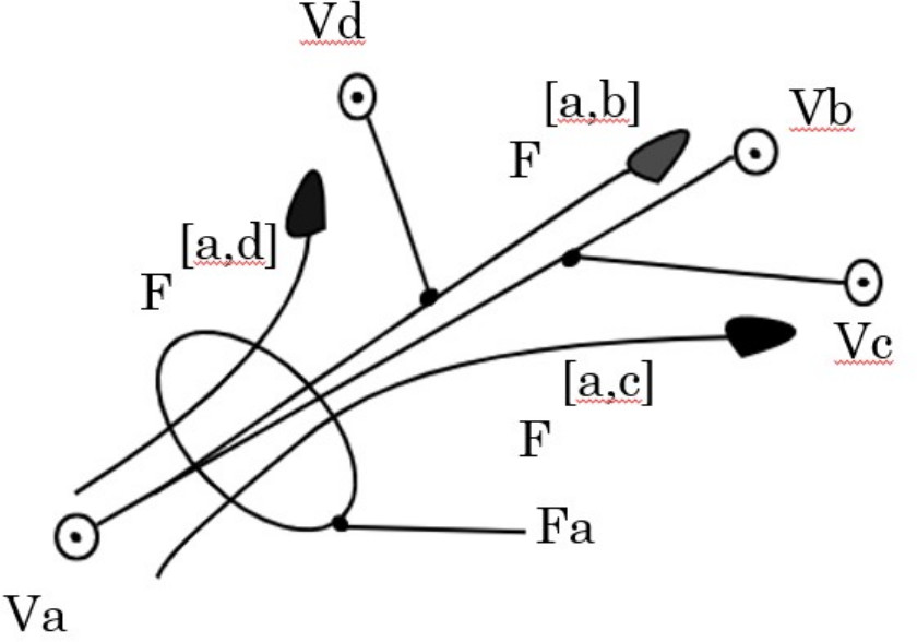 Каналы, представляемые направленными ребрами, обозначаются как , . Физическая связь между узлами и приводит к двум направлениям логических каналов, каждый из которых обозначается упорядоченным кортежем, а именно и соответственно.