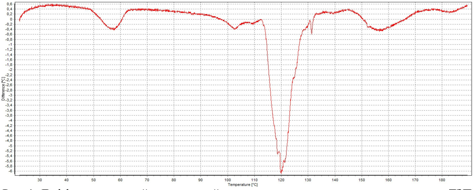 Рис. 1. Дифференциальный термический анализ эндотермического компонента для ТЗП