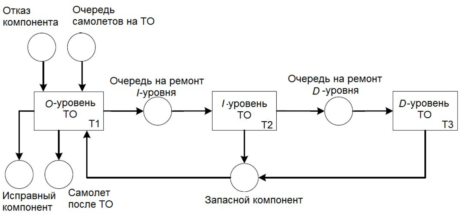 - Sheng J., Prescott D. A colored Petri net framework for modeling aircraft fleet maintenance with cannibalization // Reliability Engineering & System Safety. 2019. Vol. 189. Pp. 67–88.