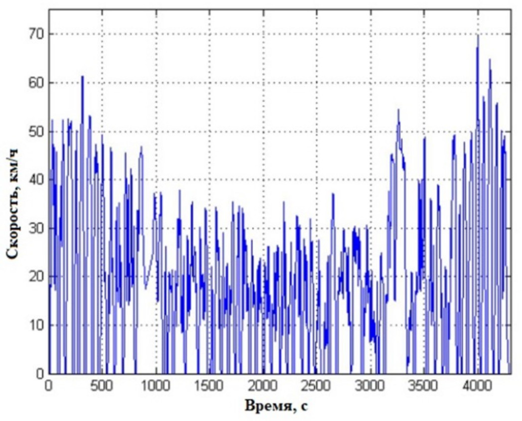 Рис. 1. Скоростной профиль автомобиля малой грузоподъемности в городском цикле