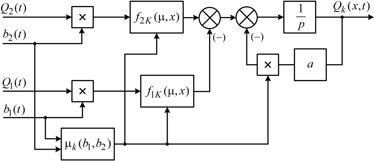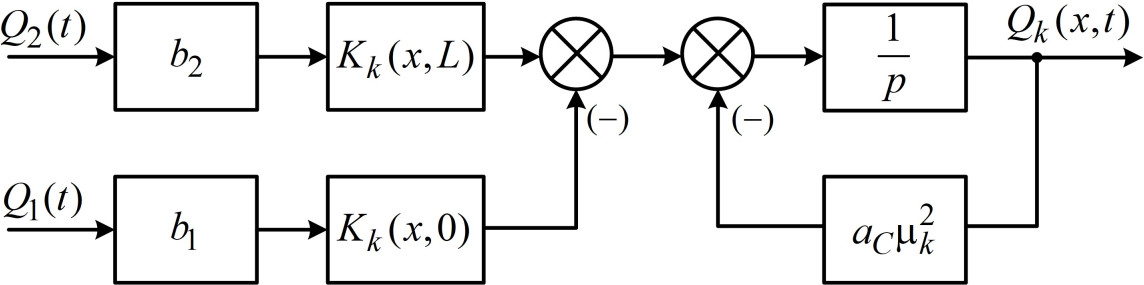 Рис. 2. Структурная схема k-го слагаемого решения с переменными коэффициентами