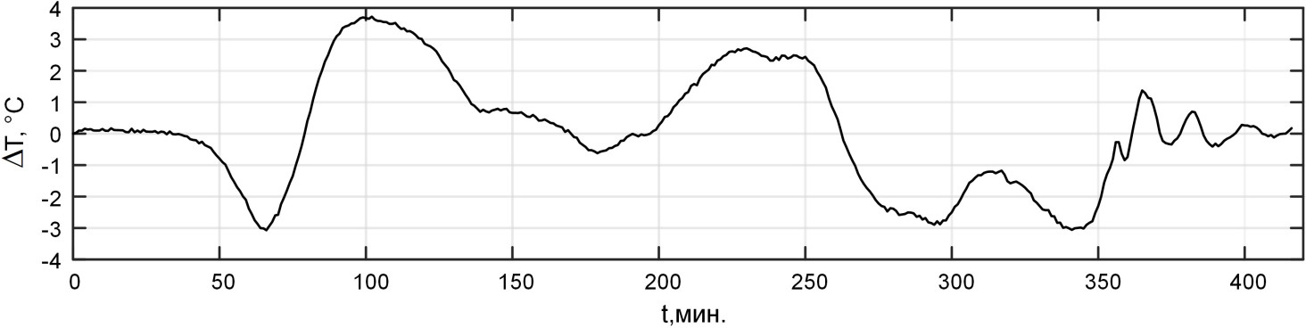 Рис. 6. Рассогласование фактической и модельной температур