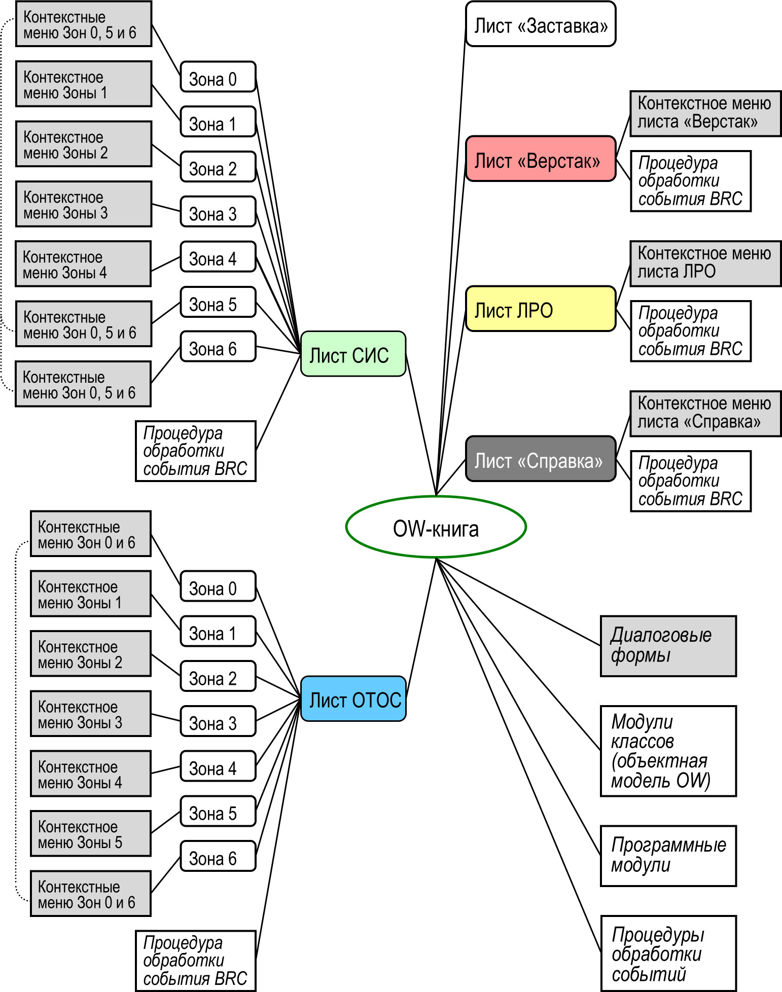 - – функциональные сервисы OW-листов объединены в одноименные программные модули OW-книги. К ним добавлен модуль, содержащий описания разделяемых переменных и сервисов;