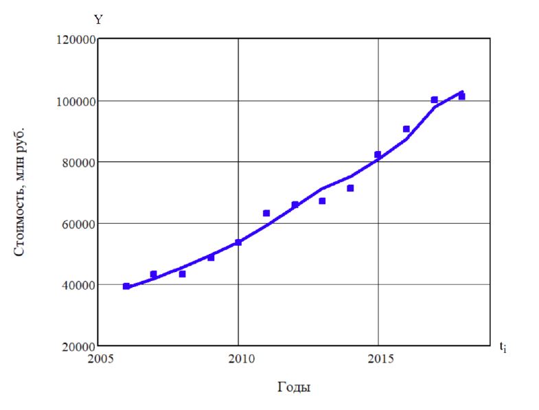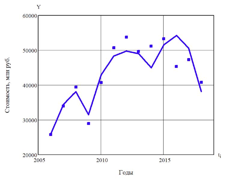 Рис. 2. Стоимость выпущенной продукции электротехнической отрасли (сглаженные данные)