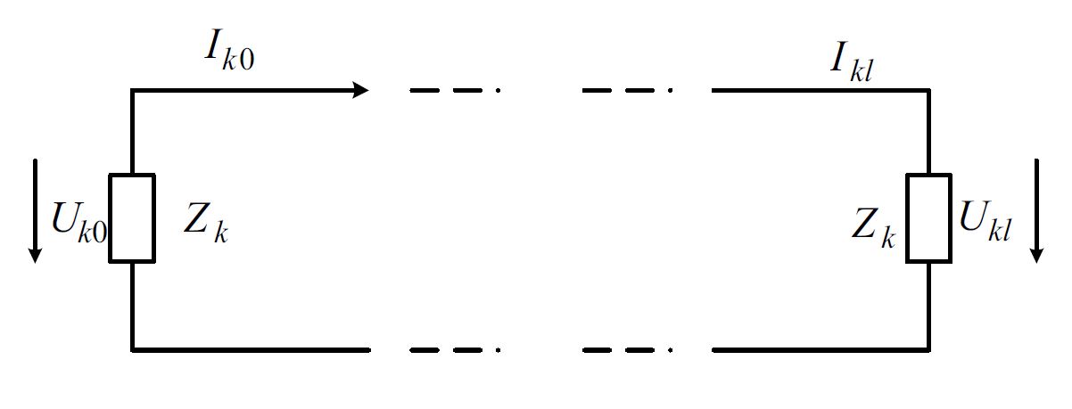 Подставляя уравнение (9) в уравнение (6), получим токи во всех z цепях на основании системы z уравнений. Для наглядности приведем k-е уравнение [2]: