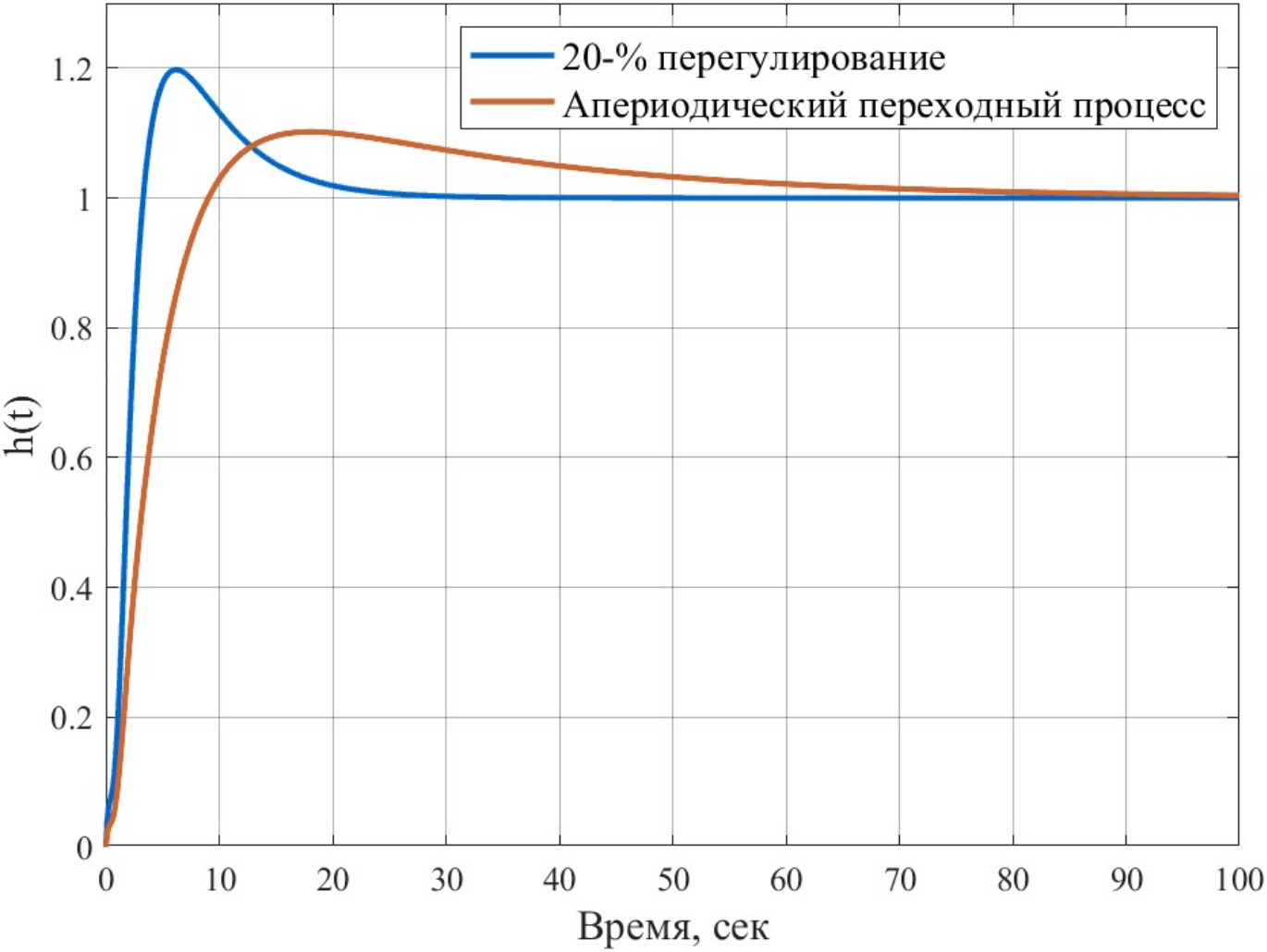 Вид переходного процесса | Коэффициент усиления ПИ-регулятора, Kp | Постоянная времени ПИ-регулятора, ТИ |