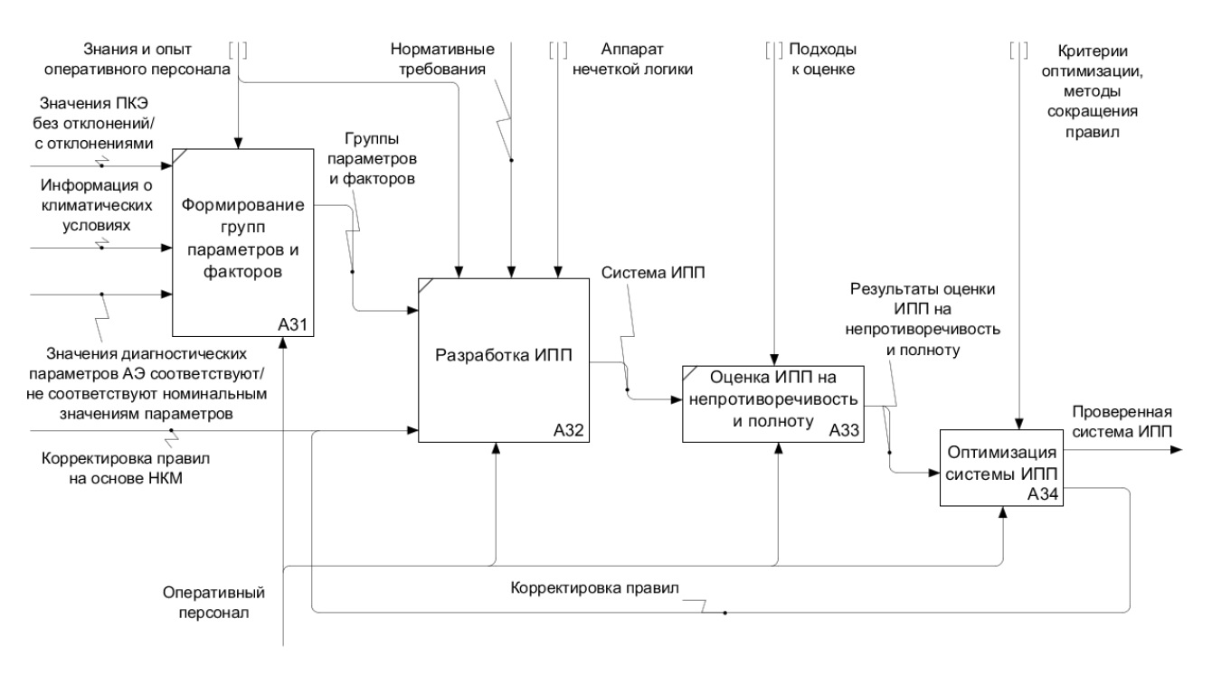 Функция А5 – Анализ результатов диагностирования. Данная функция позволяет проводить анализ полученных результатов диагностирования АЭ. Если результаты диагностирования АЭ у ЛПР вызывают сомнения, то он поручает персоналу задание, например, подкорректировать НКМ либо продукционные правила.