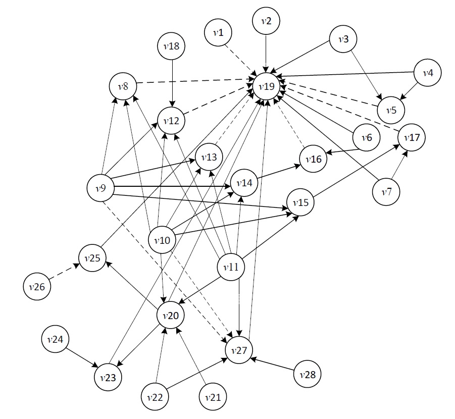 Неоднородная когнитивная модель, представленная на рис. 7, состоит из следующих 28 вершин: