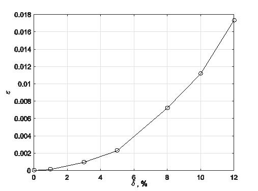 Рис. 2. Зависимость точности решения от уровня СКО случайного возмущен