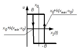 Согласно (3) и (4) получаем гистерезисную характеристику U(x) алгоритма управления (1):