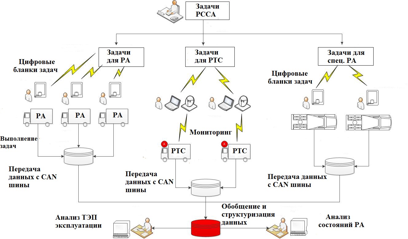 Рис. 2. Схема взаимодействия в рамках РССА при организации технического обслуживания роботизированных автомобилей