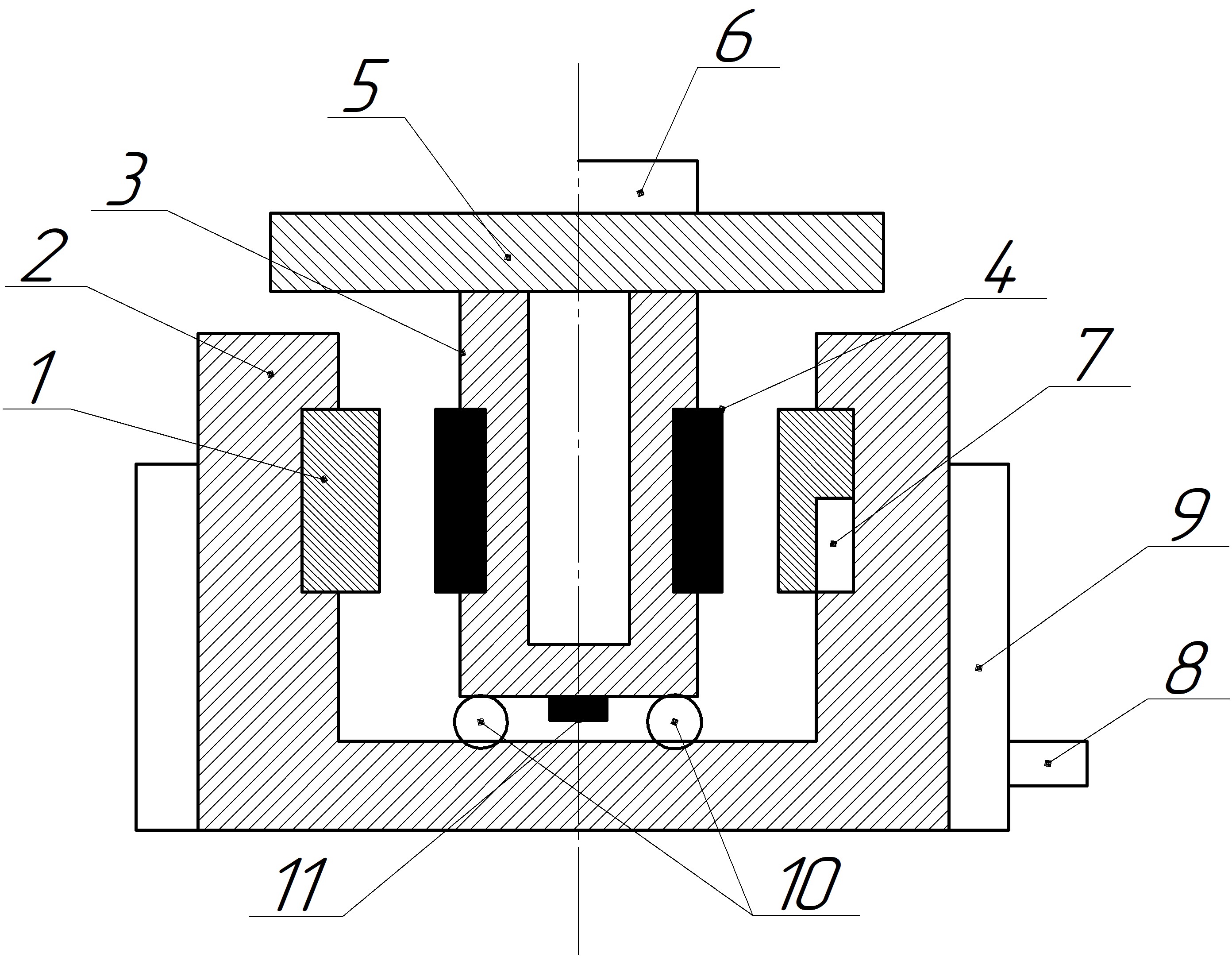 10 – подшипники статора; 11 – датчики параметров электродвигателя