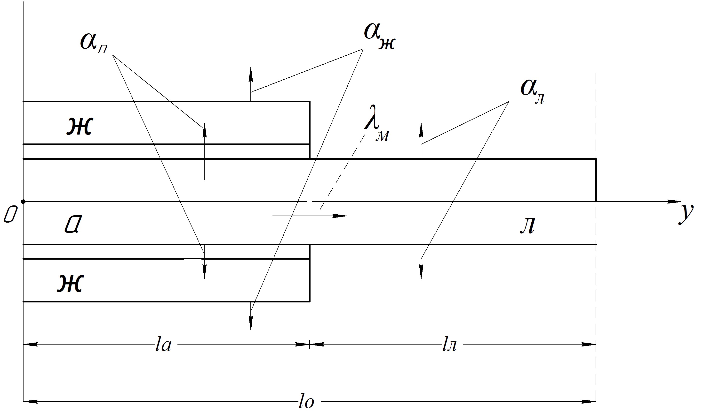 Исследование процесса нагрева реального электродвигателя со всем многообразием сторон термического процесса связанных между собой частей, отличающихся друг от друга формой, размерами, термическими параметрами, производительностью внутренних источников тепла (патерами), описать не представляется возможным. Поэтому целесообразно пренебречь некоторыми факторами, мало влияющими на процесс. Рассмотрим термические процессы, связанные с обмоткой и пакетом железа статора. Представим электродвигатель термической моделью (рис. 2) [13].