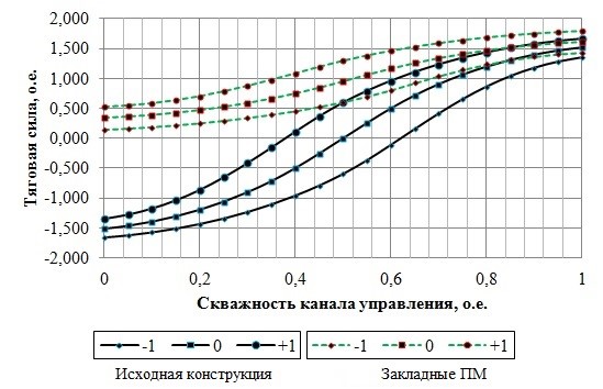 На рис. 5 представлено семейство тяговых характеристик в исходной конструкции и в конструкции с ПМ.