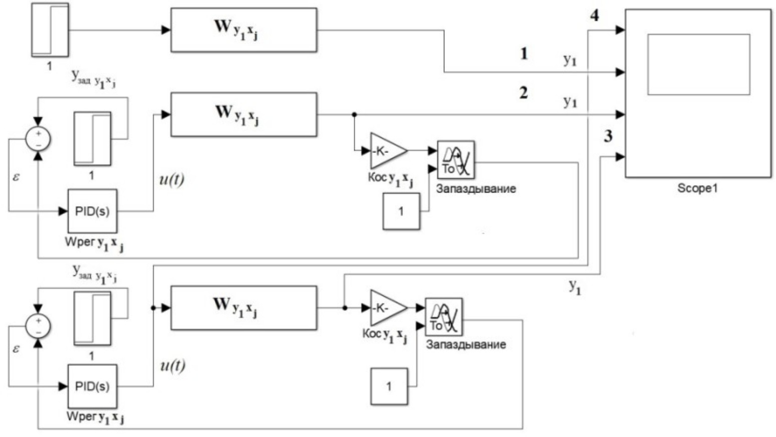 Рис. 3. Схема моделирования алгоритма динамического управления для настройки регуляторов