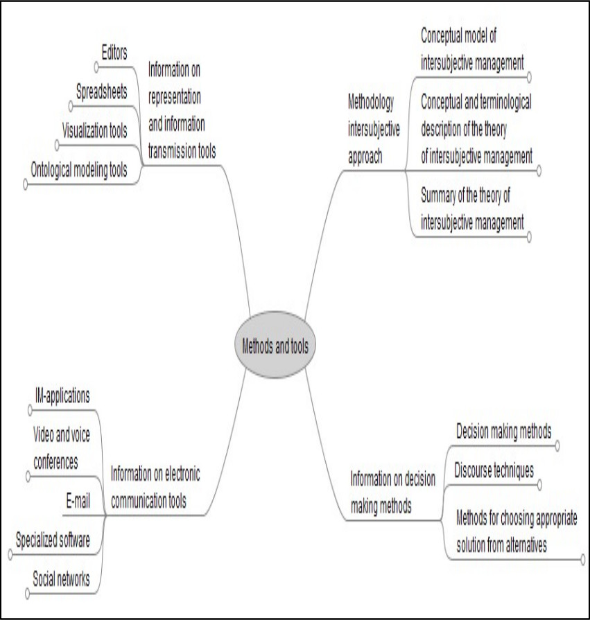 - Discourse management (discussion of problem situation, presentation of different points of view, formation of personal ontologies of actors). All of the above tools are required, to which three more methods are added (they are the last in the list bellow):