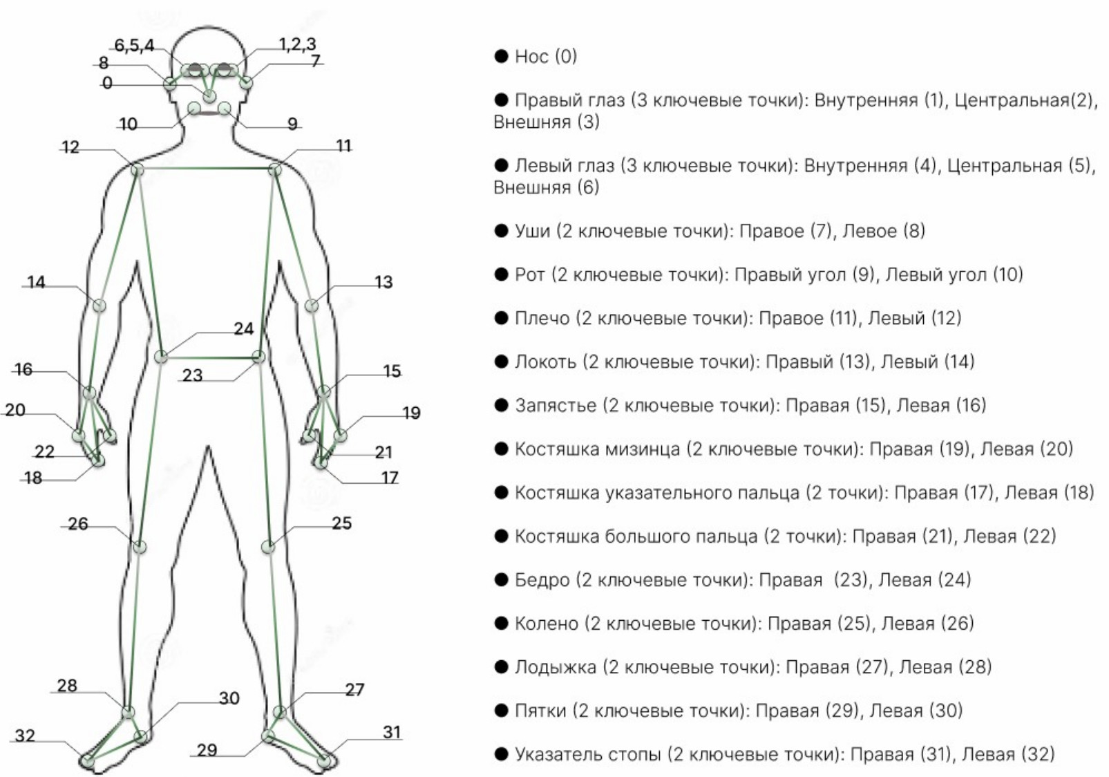 Рис. 1. Карта опорных точек тела человека