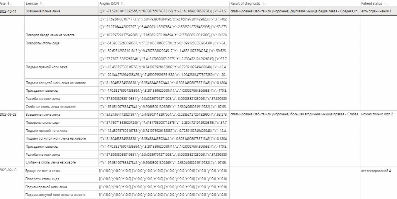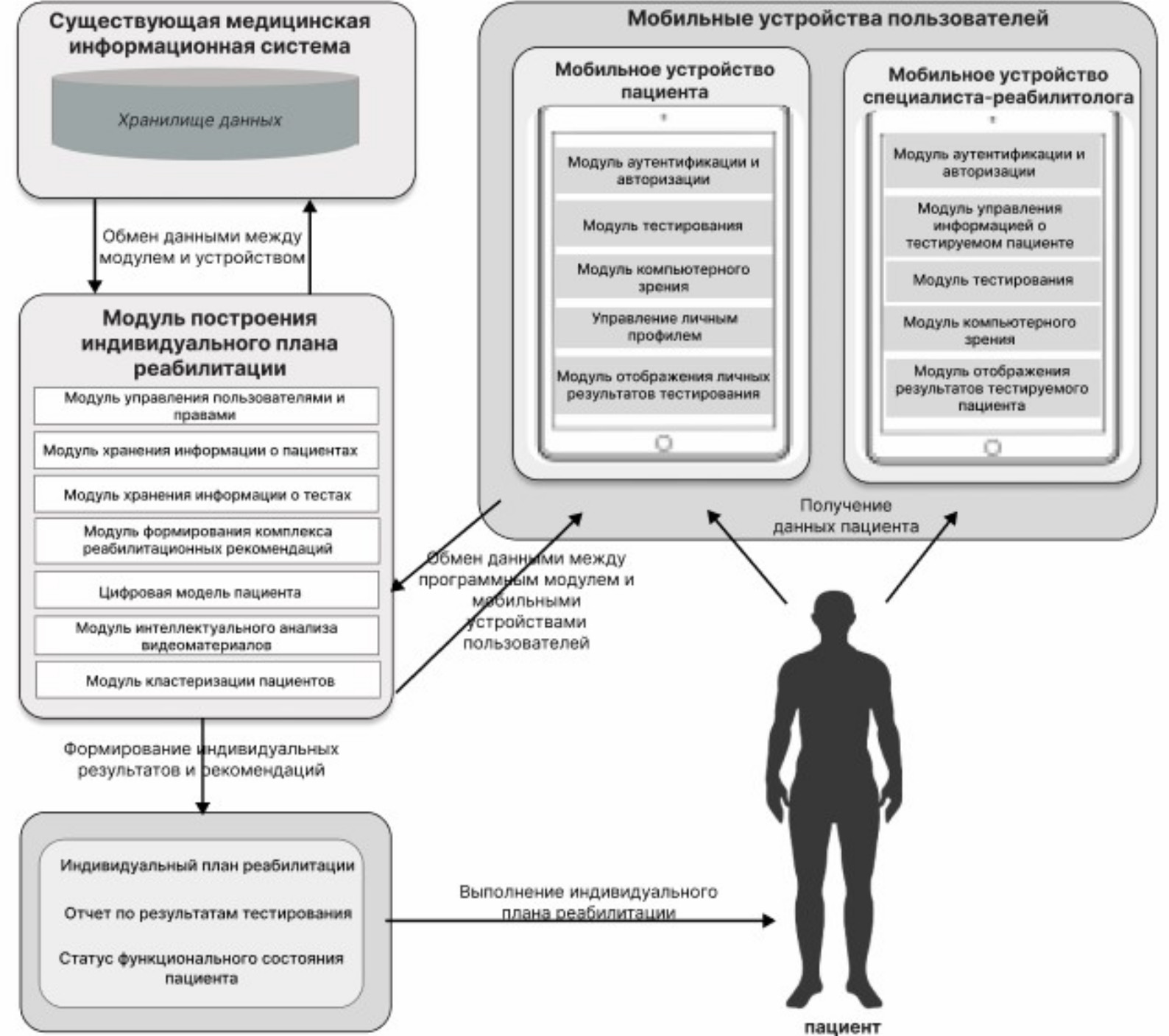 • составление и дальнейшая корректировка индивидуального плана, оценка корректности ранее выбранных реабилитационных упражнений, проводимая на основе фиксируемых данных;