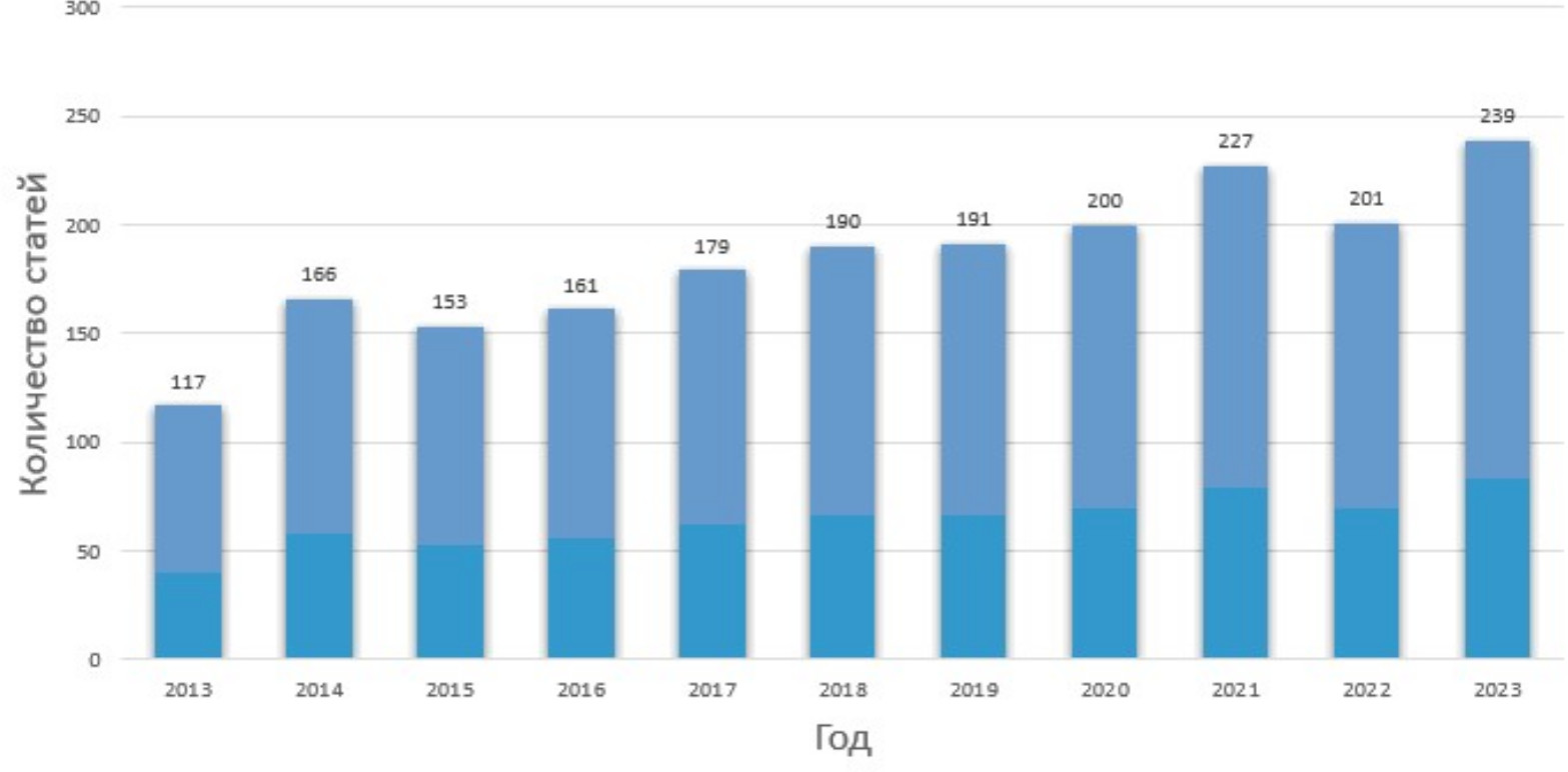 Рис. 1. Общее количество статей, опубликованных в 2013–2023 гг.