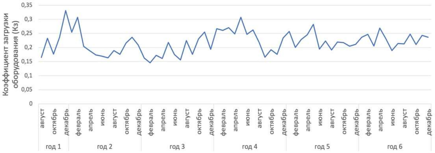 Из рис. 1 видно, что суммарный коэффициент загрузки гальванического участка меняется, принимая значения от 0,34 до 0,15.