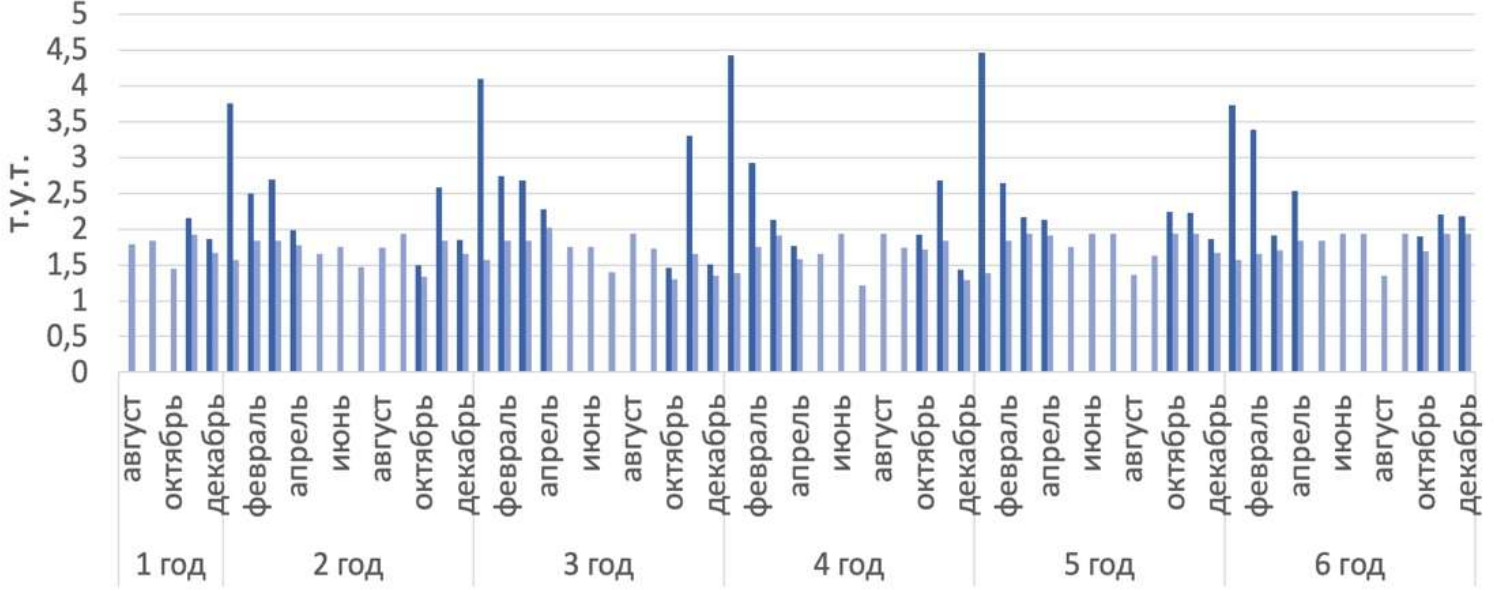 Рис. 6. Динамика требуемого количества теплоты на технологические процессы