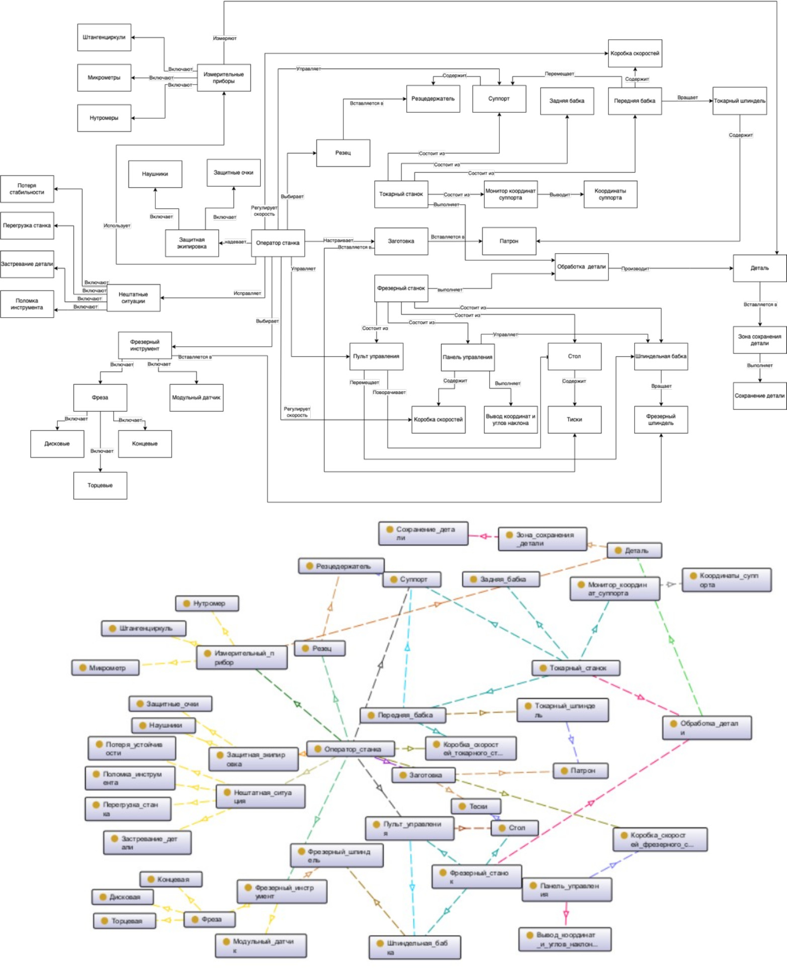 Рис. 1. Семантическая сеть и онтология предметной области «Металлорежущие станки АСУП»