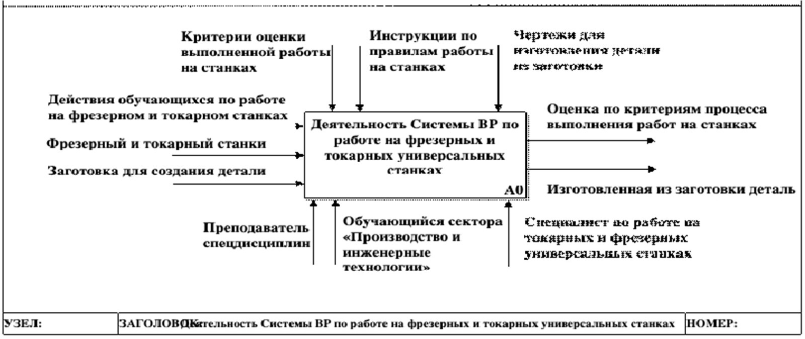 Рис. 5. Контекстная диаграмма IDEF0 функционирования виртуальных тренажеров реальности для универсальных металлорежущих станков – фрезерных и токарных
