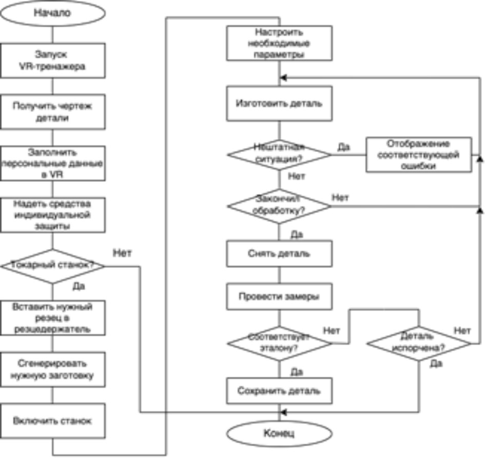 Блок-схема сценария обучения на примере токарного станка представлена на рис. 6. В процессе обучения также генерируются нештатные ситуации.