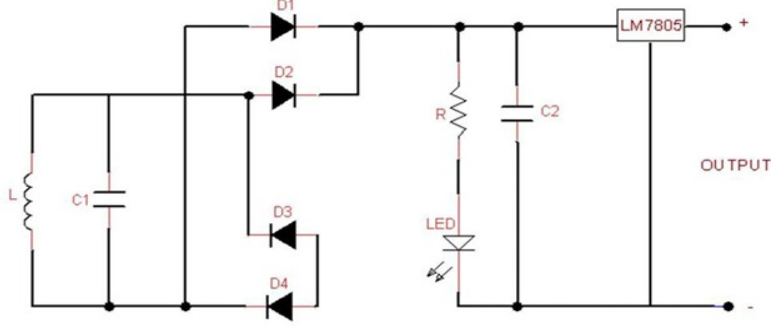 The transmitted current received on the receiver side is AC. However, for purposes of charging the battery, DC is needed hence the need for rectification. In the design, a full wave bridge rectifier instead of a half wave rectifier is used. It is basically a full wave rectifier but uses four diodes instead of two which then form arms that are the bridge rectifier.