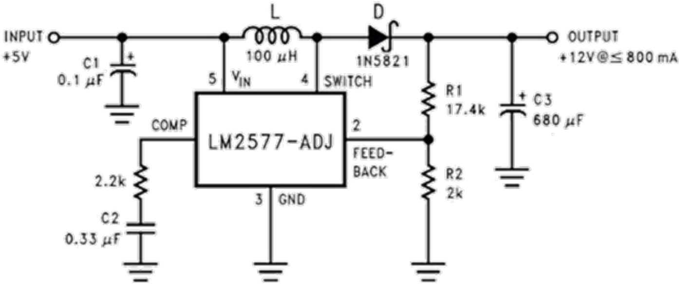 This is required since the voltage required to be fed into the oscillator is 30V yet from the power supply unit only 5V is being achieved. To step up to 30V, we use the switching regulator shown in Fig. 5.