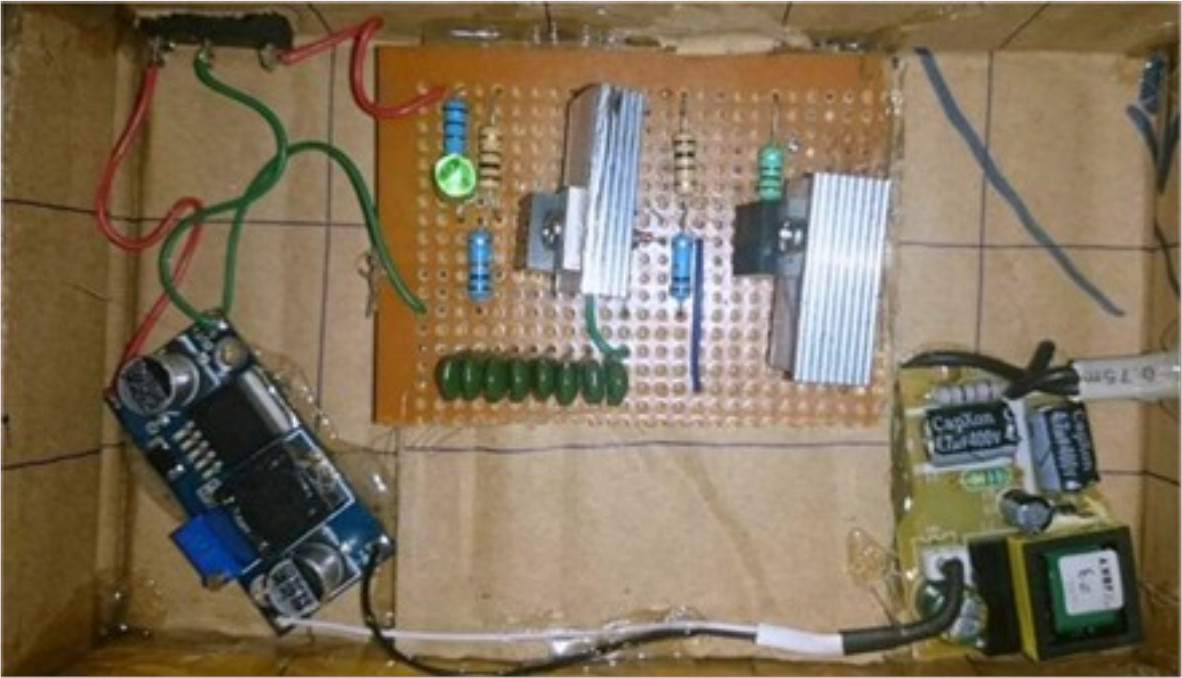 After assembling and fabricating the components on the veroboard. The above three objectives formed the transmitter module. When assembled and fabricated, it is as depicted in Fig. 11.