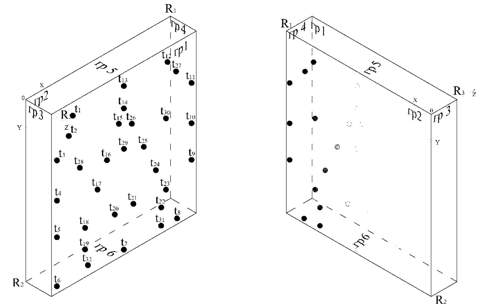 В силу того, что для рассматриваемой математической модели объекта управления управляющие воздействия и возмущения представляют собой потоки тепла на гранях НК, т. е. формируют граничные условия 2-го рода, температурное поле рассматриваемой краевой задачи представляется суммой температурных полей соответствующих одномерных пластин: