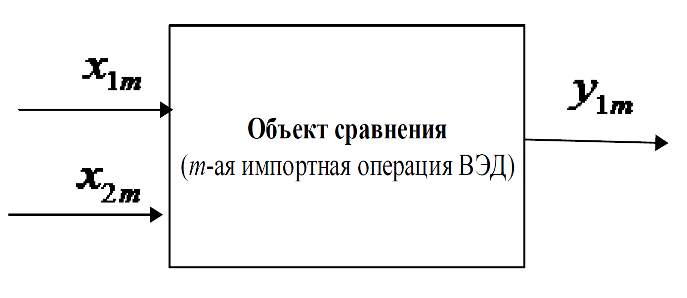 2.2. Многофакторный анализ эффективности операций ВЭД на основе DEA-метода. Перечисленные в табл. 1 и 2 варианты совершения таможенных операций рассматриваются в качестве группы объектов для многофакторной сравнительной оценки эффективности в анализируемом календарном году.