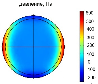 Рис. 2. Распределение давления в плоскости клина задвижки при x = 0
