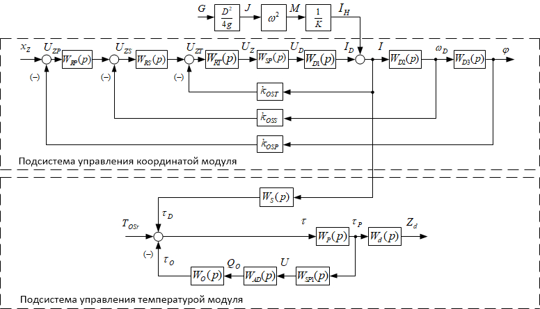 Рис. 3. Структурная схема САУ мехатронного модуля: