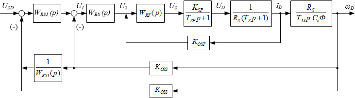 Рис. 5. Структурная схема одноконтурной системы регулирования скорости