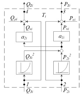 Структурная схема силового трансформатора – элемента системы электроснабжения как объекта управления величиной или реактивной мощностью построенной по выражениям (3) – (9), – показана на рис. 2.