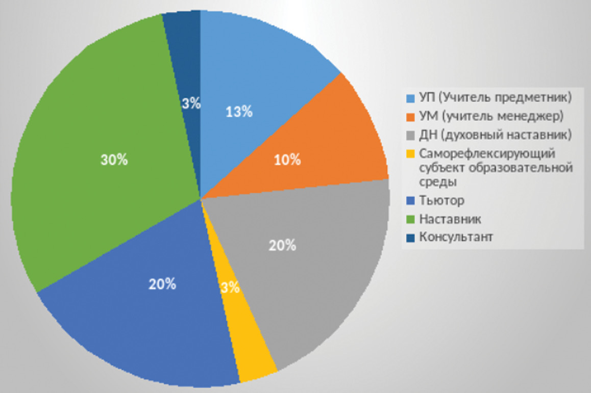 Ответ на вопрос «Какие роли вы играете в отношении своих учеников?» представлен на диаграмме (см. рисунок).