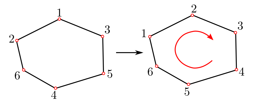1.1. На первом этапе производится перенумерация всех узлов каждого зерна таким образом, чтобы обеспечивалась последовательная нумерация узлов по часовой стрелке относительно центра зерна. Результат сортировки показан на рис. 1.