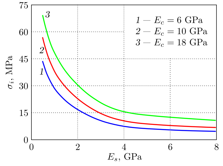 При увеличении модуля упругости губчатой костной ткани $E_s$ (увеличении жесткости кости) возрастает часть нагрузки, передаваемая на эту костную ткань. Поэтому