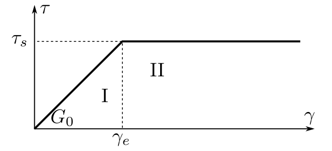 В упругой области действие внешних сил уравновешивается напряжением $\tau =G_0 \gamma$, где $G_0$ — постоянная.