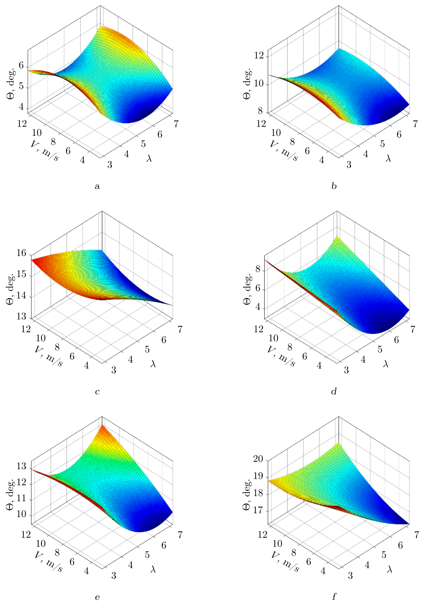 На основании представленных выше исходных данных и допущений было выполнено моделирование изменения аэродинамических параметров для каждого расчетного случая. В результате были получены значения дифференциальной ошибки для каждой точки при различных величинах скорости ветра, быстроходности ротора и угла направления на ветер.