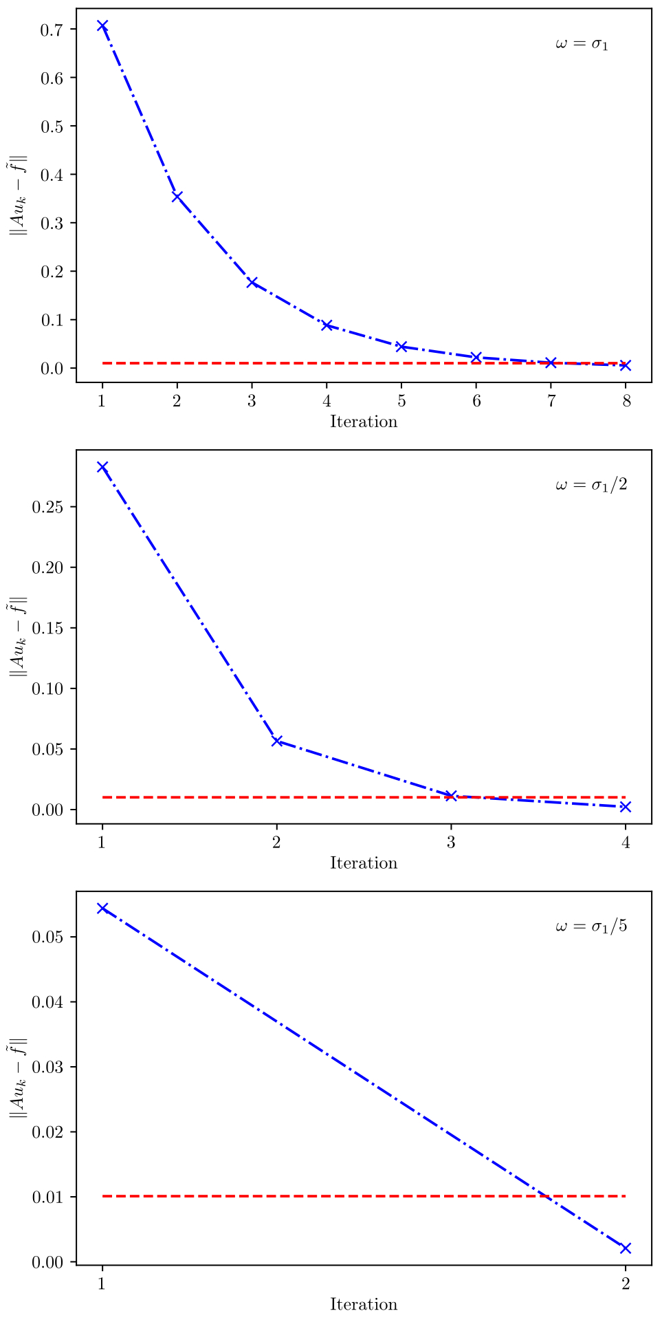 k_{\delta} = \min \bigl\lbrace k\in \mathbb{N} \; : \; \Vert Au_k - \tilde{f}\Vert\leqslant \tau\delta \bigr\rbrace,