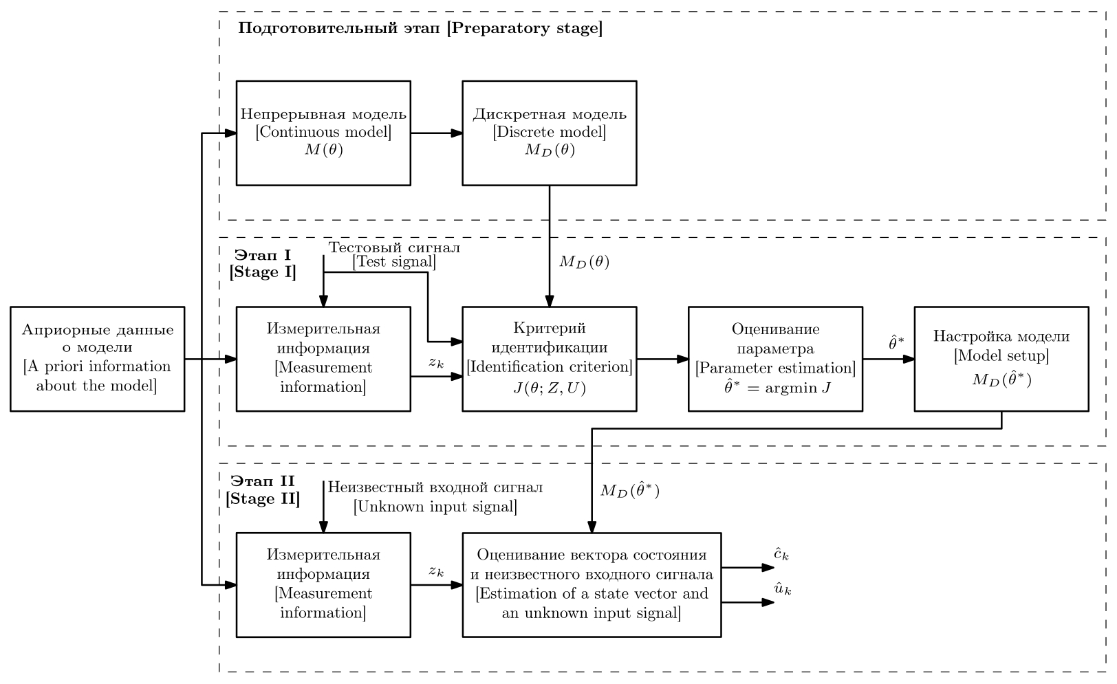 В последующих разделах приведем подробное описание подготовительного этапа и двух основных этапов процесса параметрической идентификации.