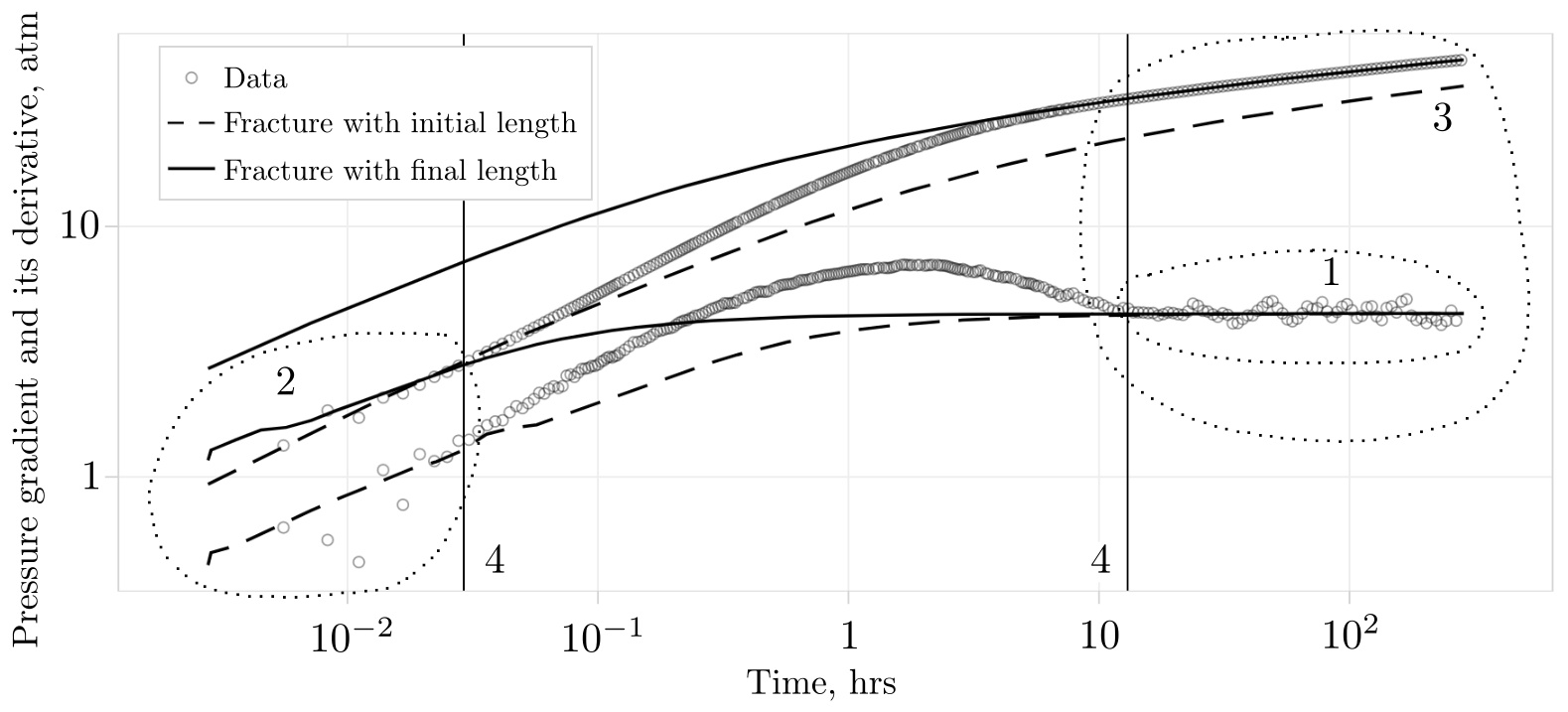 При эксплуатации нагнетательных скважин происходит автоматический гидроразрыв пласта (автоГРП), вызванный высоким давлением закачки флюида. Геометрия трещин, образующихся в результате автоГРП, в частности, их длина, напрямую зависит от давления на забое скважины. В процессе дальнейшей эксплуатации скважин геометрия трещин может изменяться, что негативно влияет на разработку месторождений из-за незапланированных изменений в системе «скважина–пласт». Наличие изменений геометрии трещин можно отследить с помощью гидродинамических исследований скважин (ГДИС).