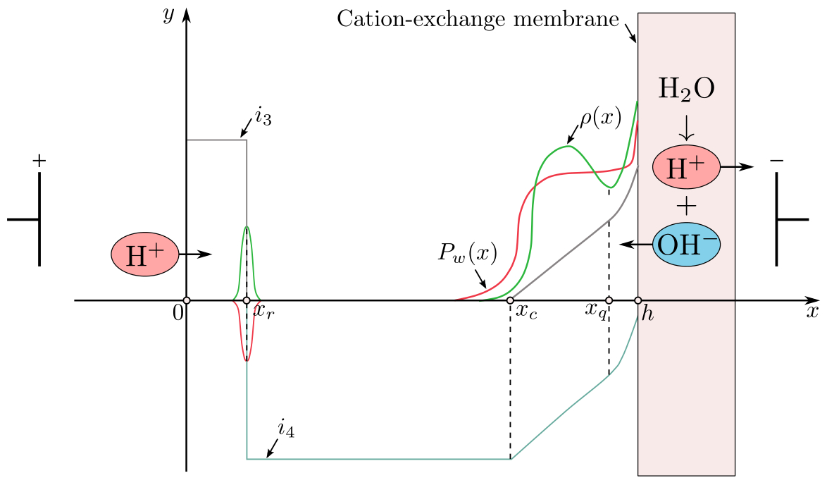 - установлено, что предложенная модель приводит к значительному (на порядок величины) росту потоков ионов $\mathrm{H}^+$/$\mathrm{OH}^-$;